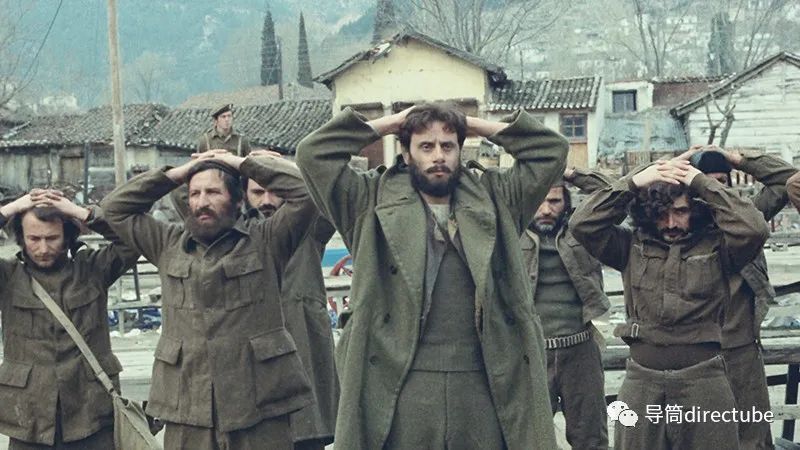 ——这样的政治可能适用于加强大众团结,但实际上无论发生什么,它在其他地方也同样有效,因为政党、带着大写字母H的历史、意识形态、真正的敌人和胜利的行动,都给予它不断发展壮大的翅膀。弗朗克·卡森提《红告示》 L'Affiche rouge (1976)海报该电影源自真实事件:二战期间的法国有一个主要由外国移民组成的抵抗组织,领导者是亚美尼亚诗人米萨克·马努尚。1944年,已是胜利前夕,这个组织中包括马努尚在内的23人却遭纳粹杀害。他们当中仅有三名法国人,其余来自西班牙、匈牙利、意大利、波兰、亚美尼亚、罗马尼亚等六国。故而纳粹把其中十人的照片印上红色布告,在巴黎大量分发,试图证明抵抗者均为外国恐怖分子。当前修正主义电影的本质对我来说似乎总结为一个概念,即政党政治,正如它(在修正主义者眼中)所表现的本质一样, 是纯粹和简单地对加强大众团结的外部监管(gardienne extétieure) , 这样“人民”才能够保持因他们旧主人的腐烂臭味而濒临灭绝的古老美德。这个过程是不断重复的。从根本上远离人民, 修正主义政治只想场面调度(mise en scène) 骄傲的“大众团结”(unité populaire) *。为了法国共产党的人,修正主义者的示威甚至演变成暴力,它永远只是一个向公众显示的战略储备,这一储备不为自身利益只想服务于新旧资产阶级间的竞争。在这种情况下,“人民”是一场戏的临时演员,他们与书写、扮演一个绝不是自己的角色毫无关系。他们是通过工会参与竞争而不是通过参加政治性的阶级对抗。修正主义者期望他们的“人民”展示不同于旧世界的美德,这样新兴资产阶级的政治阶层就可以通过政变上台。「*事实上,像所有的资产阶级一样,修正主义者的出现基于人民的政治分歧。调停的核心在于工人贵族对大量有生产力的半熟练工人、青年、侨民和妇女公的工会专政。——原注」在修正主义展示其“人民”的过程中,修正主义电影就是场面调度的场面调度(mise en scène de cette mi seen scène) 。它创造了带有本质特色的人物形象,这些人物的唯一功能就是服从于所谓“新主人”(葡萄牙农民反抗的对象)针对他们施加的监管。因此,这种电影中的“人民”虽然仅是一个临时演员的具象概括(une figuration de figurant) , 但是被无限制地放大。在我看来, 这是修正主义电影人喜爱二度虚构(fiction au second degré)的根源所在:电影刻画的是描绘人物行动的演员。在这里就透露出了重要的秘密,即对于新兴资产阶级来说,群众是他们计划的主题而不是源头―—群众只是一个角色,一个被征服的力量,而不是一个创造性思维的主体。这一思想应该开始出现吗?它可是关于人民革命政治纲领的一切啊,它必须被无情地压抑,因为对于修正主义者来说,“大众团结”在新旧资产阶级之间的竞争中,在法西斯分子和社会法西斯主义者之间, 是而且必须保持政治中立(polituement neutre) 的部分。贝特朗·塔维涅《法官与杀人犯》The Judge and the Assassin (1976)这种中立解释了修正主义电影假装投向人民的那种完全人类学的、非常尊重的目光,其实是十分轻蔑的。包括习俗、大量的努力工作、过时的演讲、歌曲、目光短浅的智慧和愚蠢的固执。勇气本身就是某种荒谬的巨大集成块,其中根本没有思考。食物、性爱和死亡是生命永恒的缩影。在修正主义政治家的眼睛及其对象之间,这些节庆活动就是它们彼此不可逾越的距离的生动寓言:人民的健康统一。政党的人种学向我们展示了墨守成规的生活是什么样子:在我们人民的革命者趣味看来,耶稣神父身旁的西班牙雇佣兵认真描述一场亚马逊的仪式时,邪恶的宗教仪式也获得了同样的意义和进展。对于敌对者来说,不论他们是否是主要的吸引力,或只是荒谬的缺席者,我们要知道的就一点:他们是通过自己而不是无产阶级的所作所为陷人了疯狂与罪恶,与大众团结起来衷心庆祝截然相反,他们才有残忍的、恶意的黑色仪式。西奥·安哲罗普洛斯《流浪艺人》The Travelling Players(1975)为了明确公众舆论和对这些元反动电影(films archi-réaction naires) 的大众批判(态度) , 我们会对在其中看到的一些虚假的马克思主义者感到不满。例如,他们认为,阶级是在他们的存在而不是在他们的斗争中被描绘。
