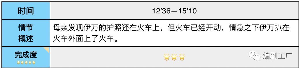 接下来编剧继续设计了一个展现主人公徐伊万“个人生活”的事件,徐伊万来到母亲卢小花家,发现房门紧闭,母亲已登上前往莫斯科的火车,徐伊万登上火车与母亲一番争执后拿上钥匙准备回家取护照,通过这一事件我们了解了徐伊万和母亲之间的关系。影片至此完成了对主角徐伊万的人物塑造,从时长来看,铺垫部分12分钟结束,节奏准确。