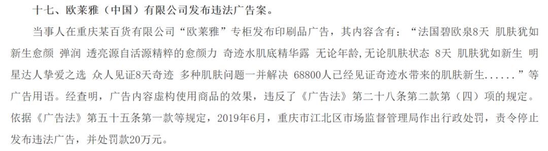 ⊙ 违法案例28-欧莱雅:虚假内容广告被罚