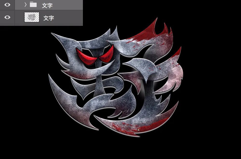 “野”字,让我联想到荒野、野兽、狂野、血腥等关键词,所以字形设计要硬朗一些,大致的字效方向还是重金属风格,要有狂野、血腥的感觉,带一点魔性~~有了思路以后就让我们开始动手制作吧!