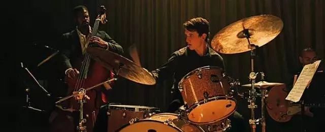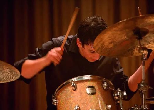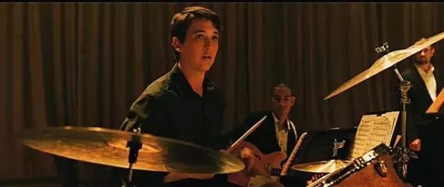 我们可以留意这一刻的细节特写镜头,这次和刚刚的镜头不同,焦点全部集中在人物上,没错,现在是音乐在进行,但是整个的核心是人,乐器与音乐可能仅仅是安德鲁的延伸和载体而已。这样的剪辑对比用得十分高超,难怪把剪辑大奖拿了个遍。