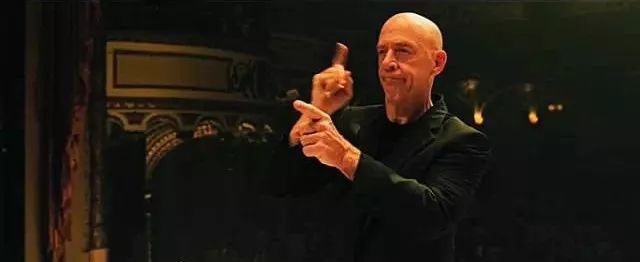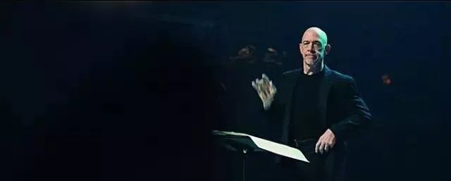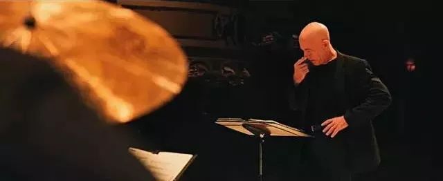 这时的对比就出现了,安德鲁早就对他的一套了如指掌,气定神闲的他在平稳演奏的同时,还不忘敲一下弗莱彻眼前的镲,算是回应了对方的谩骂。安德鲁,再也不是那个懦弱的一年级小孩了。这时我们可以留意一下剪辑师特意安排的三组眼神交流的镜头,看着安德鲁的稳健演奏,一开始弗莱彻是被击败的愤怒,第二组他开始认真倾听自己唯一一个挑选出的徒弟的演奏,最后,他竟然满意的笑了。是的,这就是奥斯卡最佳男配角J·K·西蒙斯演绎出的复杂的魔鬼教头。他所寻找的顶尖天才,也正是他会惧怕与嫉妒的天才。在某一瞬间,二人的关系再次因为音乐而交融和谐。弗莱彻抬起手,以指挥的身份享受着安德鲁的爵士鼓独奏。一连几个手持拍摄的摇镜头,左右来回按照节奏展现二人的表演。这时,二人是一体的,剪辑自然也不能下刀,一个动态分明的长镜头,打出爵士乐的切分音。乐曲看似即将结束,画面由一个大全景给到鼓手,再切回指挥弗莱彻,他一攥拳表示演奏停止。不过刚刚的和谐是幻像,他以为自己夺回了掌控权,其实没有。背景中的安德鲁依旧在演奏。弗莱彻不懂安德鲁脑子里在想什么,这样结束井水不犯河水不是挺好吗。确切的说,安德鲁此时可能脑子里根本什么也没想。如果说前一段是他意志控制下的复仇的话,那么现在的他,则完全是那个对音乐走火入魔的孩子。他自己又再次回到那个只知玩命练习的鼓痴了。