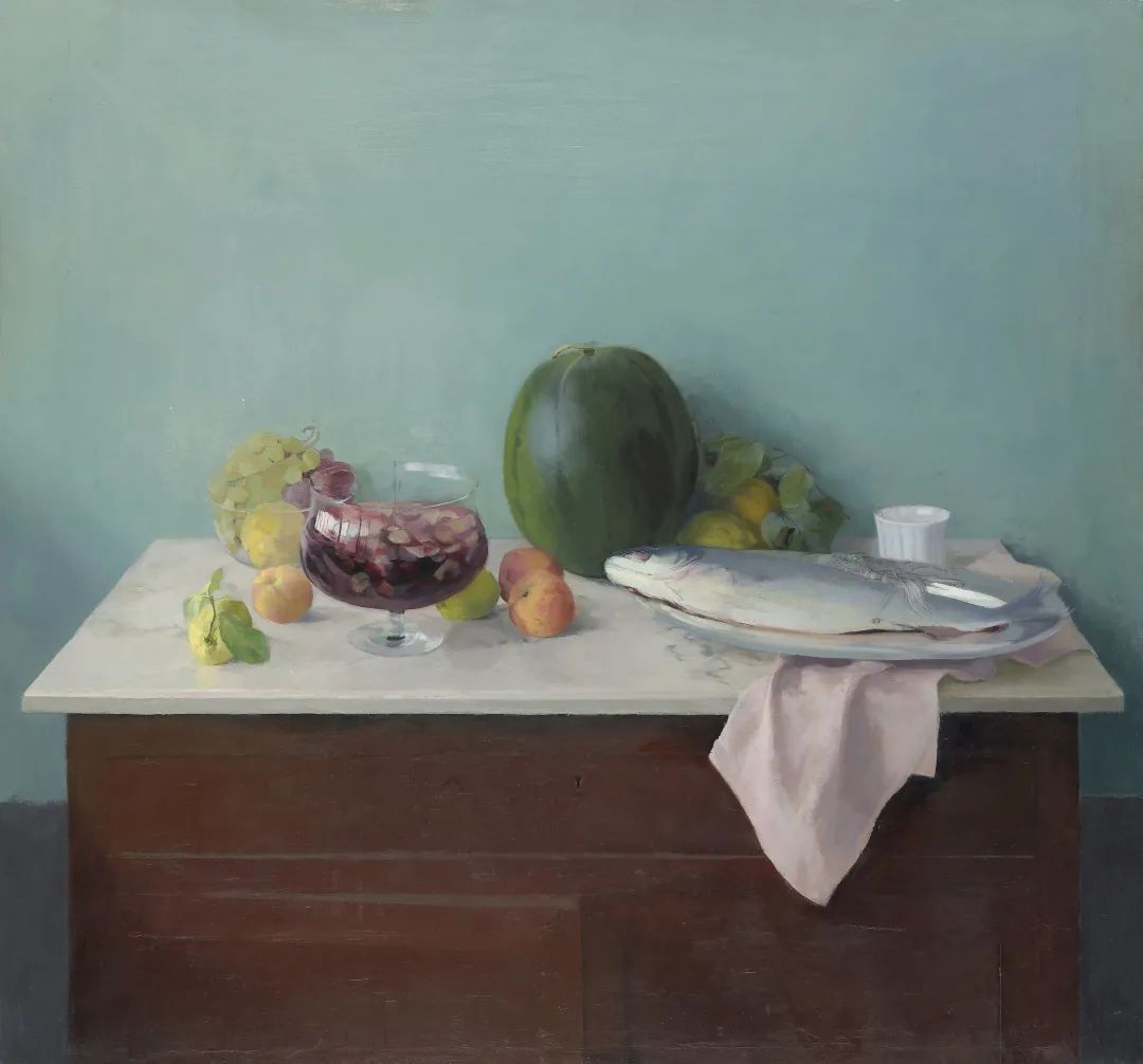 然后他决定要把这棵树和这些果实画下来,尽管他知道,他眼前注视的景象,不可能被完整移植到画布上,因为果实是有生命的,它们会随着日子而变化,每天的光也会变化。