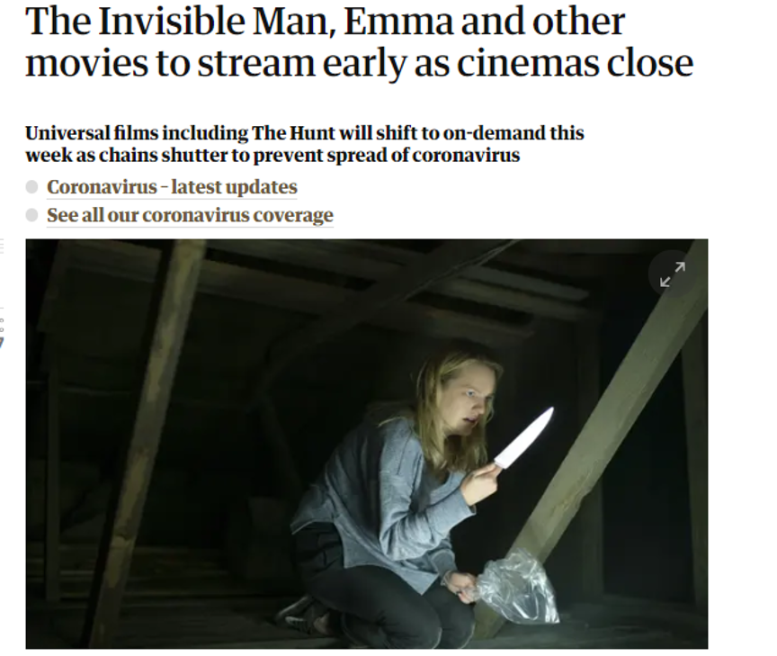 随着北美大型院线的集体关门,各大制片厂正在上映的电影也受到了极大的影响。为此,好莱坞五大制片厂之一的环球影业率先制定了新的策略,宣布旗下正在上映的影片将打破目前院线电影的90天窗口期,这些新片从3月20日起提前上线视频平台,其中部分电影甚至是线上首映。就在环球宣布这一决定后,迪士尼、派拉蒙以及迪士尼旗下的二十世纪影业也做出了同样的决定,将旗下正在上映的影片改为同步线上点播,及时止损。