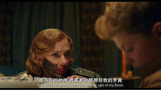 艾莎的出现让乔乔改掉了偏见,但乔乔身边还有一位很了不起的女性,那就是斯嘉丽·约翰逊饰演的妈妈罗茜,她一直在潜移默化地对乔乔产生影响,教会了乔乔去感受爱、信任和自由。
