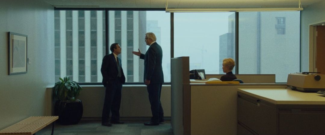 与拉克曼一起工作了几十年的灯光师约翰·德布劳解释说,办公室里的大部分照明都涉及到窗户光的控制,要么使用ND,要么使用现有的窗帘或是利用办公室里的荧光灯,增加室内的亮度来补充光线。