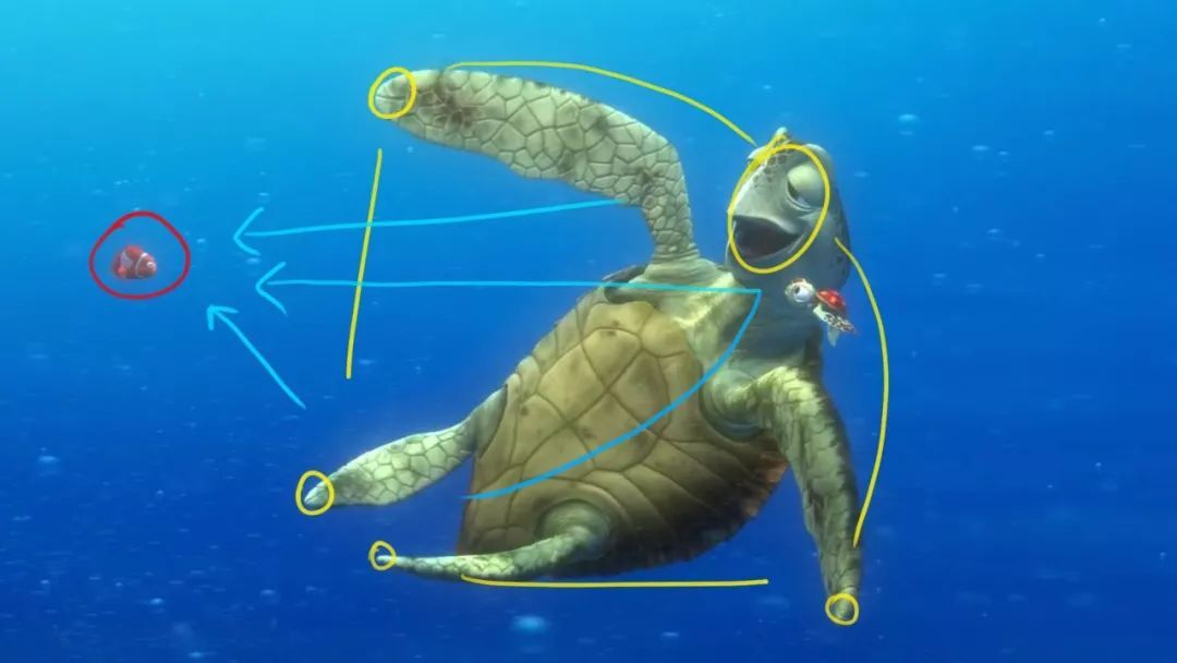 这个令人难忘的场景,来自皮克斯的动画电影《海底总动员》,完美运用「橡皮筋」来统一 Pose 以及创作出色的动作设计。