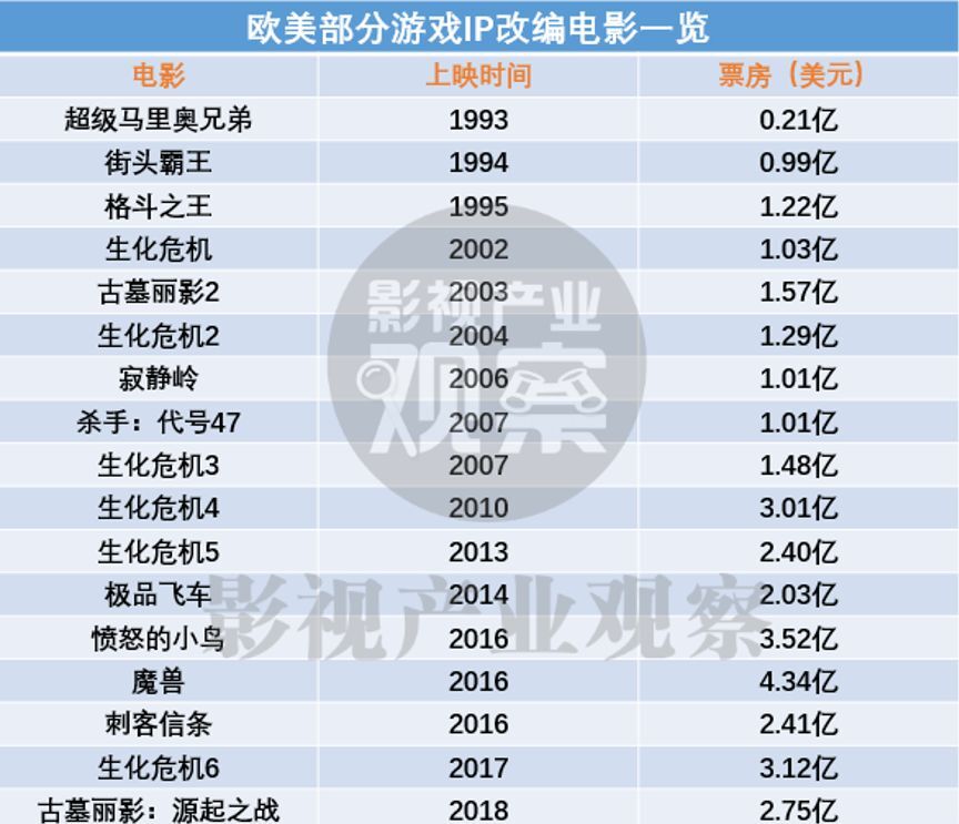 迄今为止,第一部真正意义上取得商业成功的游戏改编电影系列当属《生化危机》。自2002年第一部《生化危机》诞生以来,该系列总共拍摄了6部,累计票房超过12亿美元,在2018年,《生化危机》出品方康斯坦丁影业对外确认将重启这一电影系列的拍摄。无论从商业角度还是观众认可程度来看,《生化危机》都是游戏改编电影界为数不多的成功作品。进入21世纪之后,包括《古墓丽影》《寂静岭》《极品飞车》等在内的改编作品也与《生化危机》一起,在商业上取得了不俗的反响,并逐渐受到青睐。甚至于仅在2016年一年,就有包括《愤怒的小鸟》《魔兽》《刺客信条》等4部游戏改编而成的电影同时上映。这些游戏IP在抢滩登陆电影市场的同时,也从另一方面印证了游戏与电影联姻已成为未来电影改编的一大趋势。