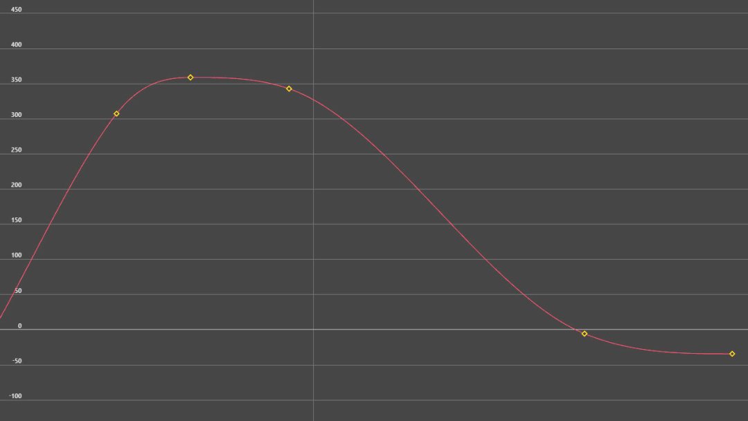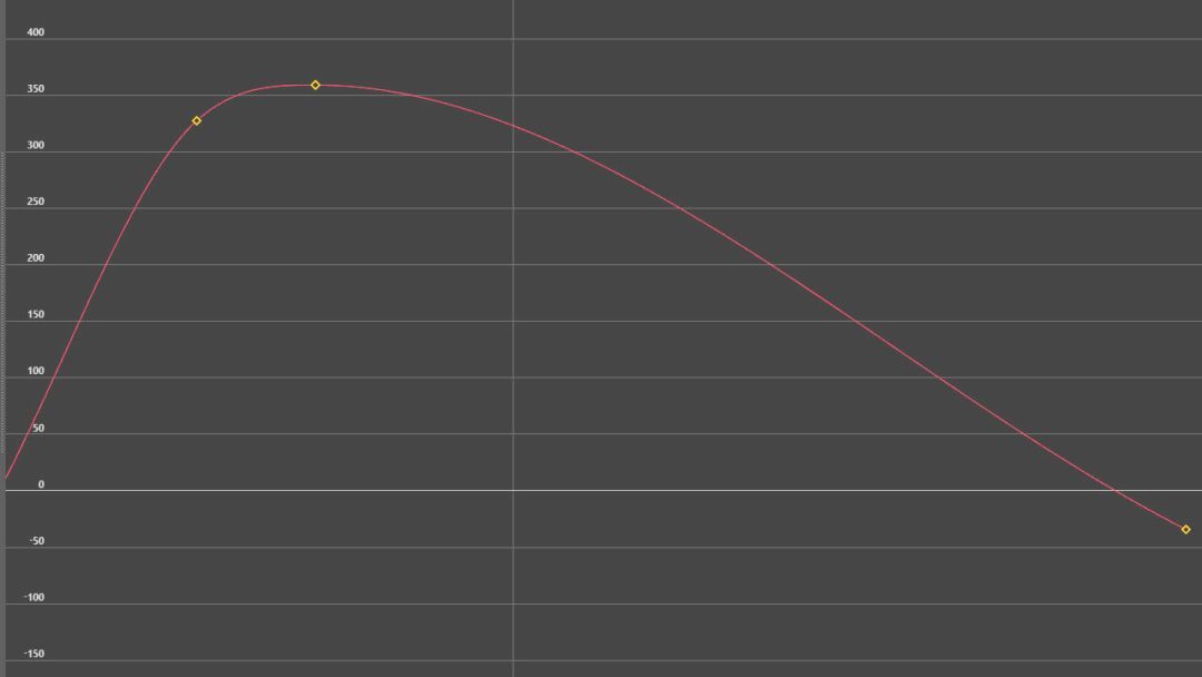 当幅度太小时,就像下面曲线编辑器中显示那样,曲线斜率变化迅速,后面几乎是平的,动画骤停。