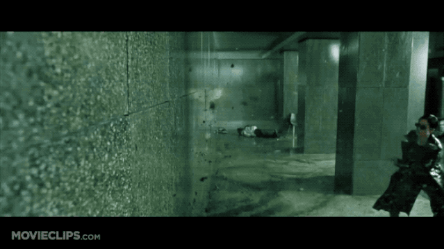 以《黑客帝国》的大厅枪战为例,若是仔细观察其间的剪接方式,便会发现几乎所有剪接点,都发生在人物的动态之中。这样的剪接处理,能使观众更专注于角色的行动,全心投入故事紧张刺激的氛围。