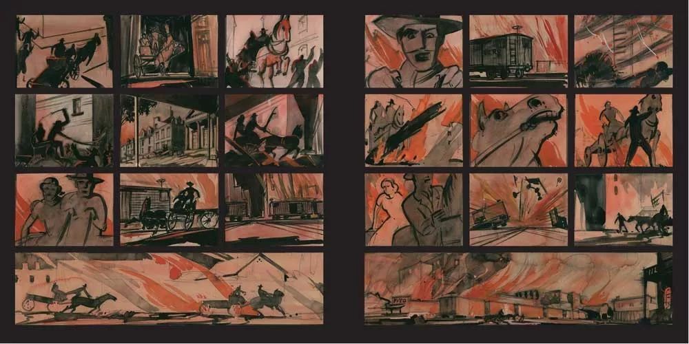 1939 年上映的《乱世佳人》,由维克多·弗莱明执导,是第一部全程使用故事板创作的真人电影。制作设计师威廉·卡梅隆·孟席斯与 7 名艺术家一起,为电影绘制了 1500 多幅水彩素描。