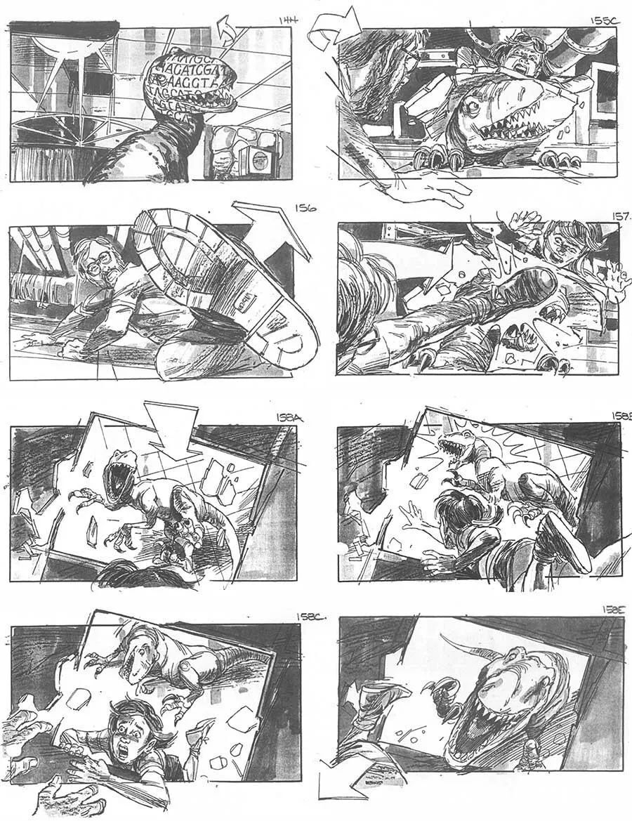 斯皮尔伯格曾与许多故事板艺术家合作。《侏罗纪公园》的故事板由 6 位故事板艺术家完成,并且斯皮尔伯格喜欢在拍摄现场安排一两个故事板艺术家,以快速抓住可能一闪而过的灵感。