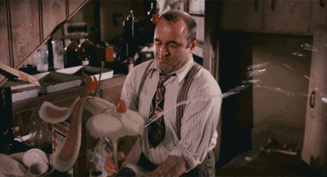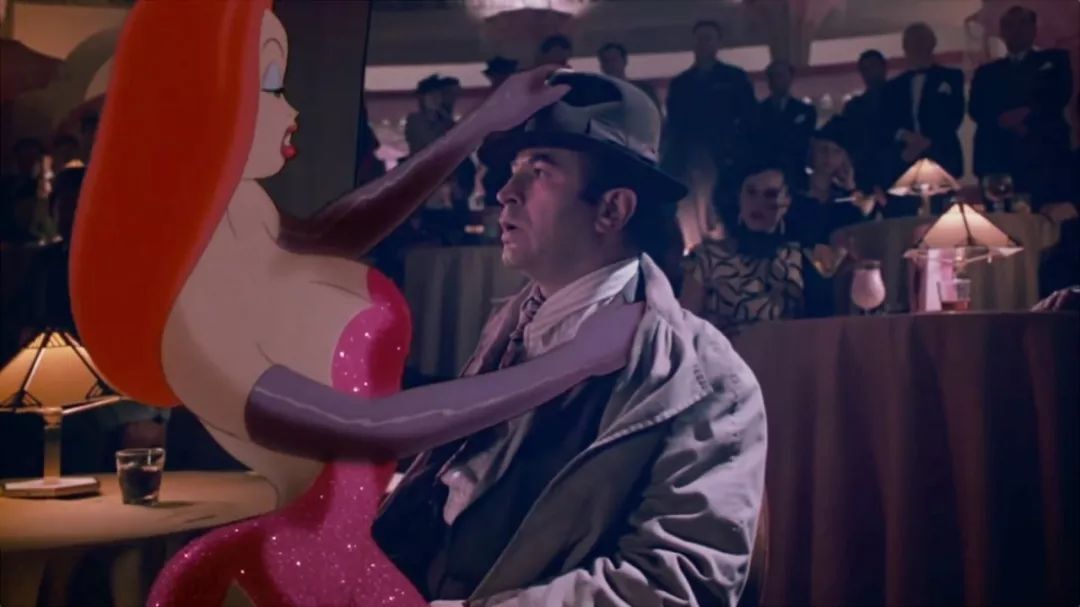 摄像机的移动很关键,是表现角色鲜活的重要因素。兔子罗杰的动画完全没有受到摄像机的影响。这部电影拍得很真实,因为它就是真实的电影。必须注意的是,虚拟角色和摄像机同步移动,在后期合成时代之前就已经实现了。