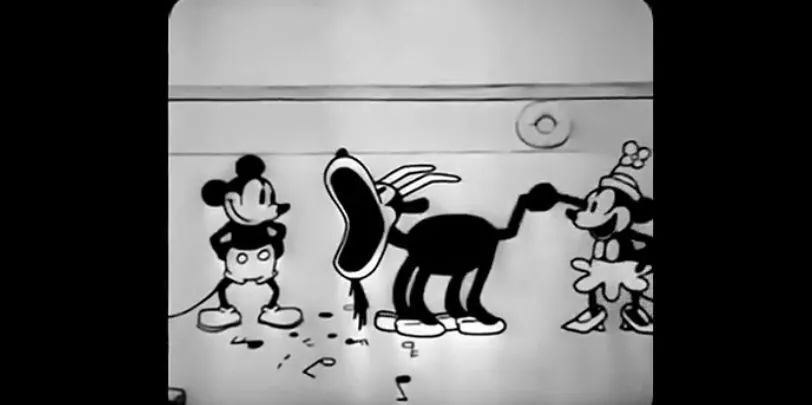 当然,如今这种自由并不是一开始就有的,早在上世纪三十年代,黑白动画时代,动画的镜头大多是比较古板的,角色在画面中横向排开,有点像横板过关游戏的感觉。