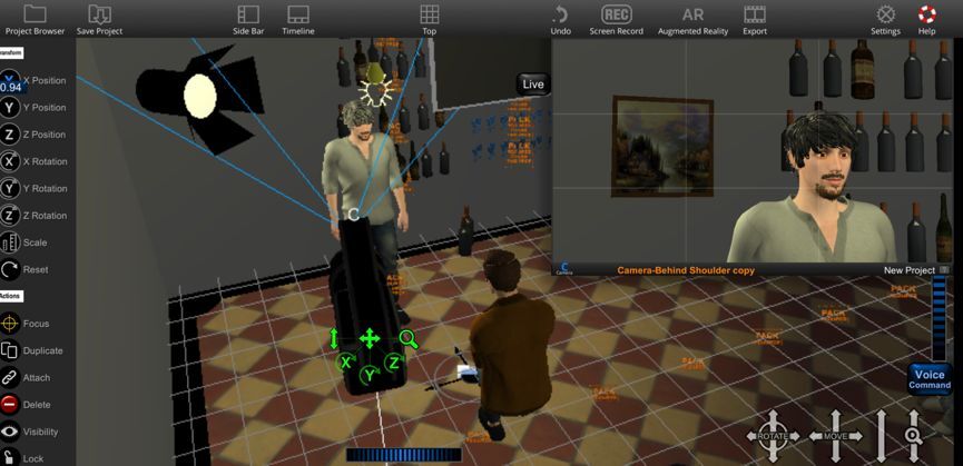 在这个项目开发中,我作为编剧、导演,我们实验室的研究生周思达作为分镜导演,和后期部门在此期间一面都没有见过,每天通过线上,通过一些软件应用,诸如:Shot Designer、Shotpro等来向后期部门展示导演想要实现的效果。这两款软件在IPAD上就可以操作,技术门槛非常低。