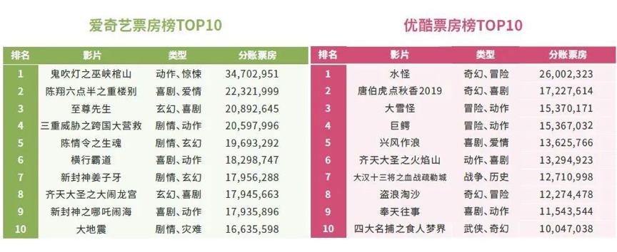 而这一成绩,基本追上了去年上半年三大平台15部网络电影分账破千万的成绩。