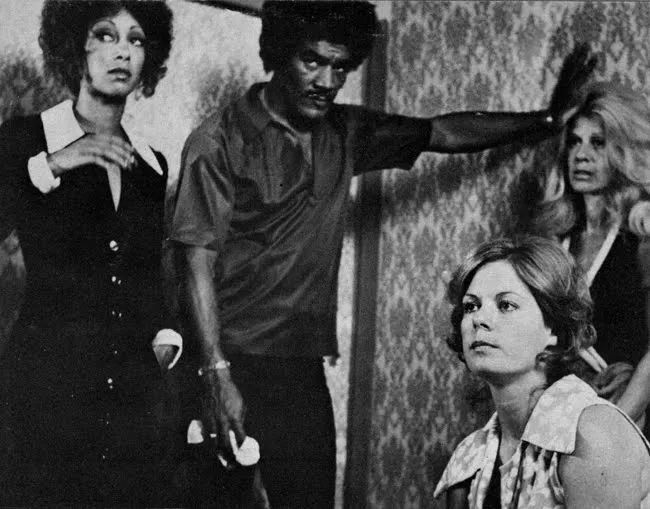 而布朗则与黑人剥削片中的偶像卡罗尔·斯皮德勾搭在了一起,她扮演了一位戴着珍珠项链的哑巴妓女,布朗深深地爱上了她。在斯图德·布朗意识到她是个哑巴的时候,我们可以在下一幅画面中看到,他们手牵着手走在街上,两人都显得情意绵绵,他说着话,而她则在一旁静静地聆听着。这是一个没法回话的女孩,但她却喜欢听这个喋喋不休的男孩说话(非要说的话,这可能也是一种黑人男性的幻想)。