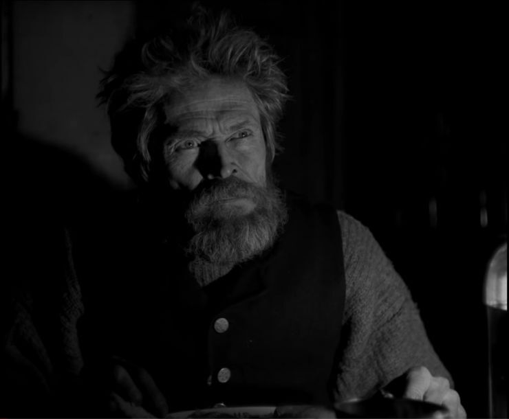 正色滤镜会消除所有的红光来模拟1930前还在大量使用的电影胶片。它让《灯塔》几乎像是一部早期的民族志电影。