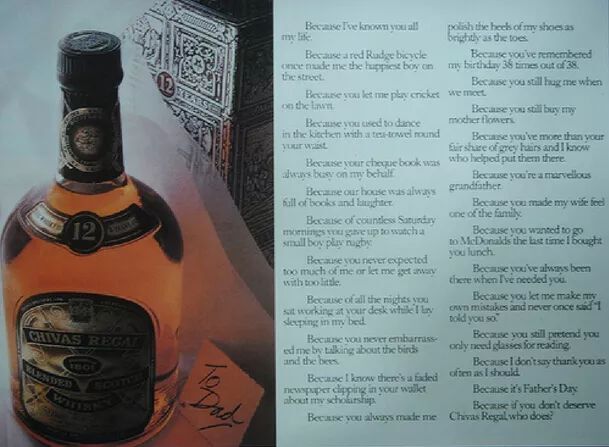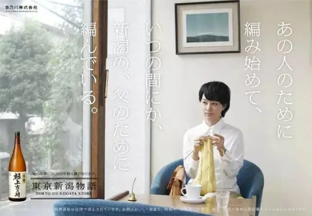 正是因为其高端的定位,芝华士的文案里流淌出来的是高贵、傲慢、皇家的气质。当然,在保持调性的同时,还有一则经典走心的父亲节文案。三毫米的旅程,一颗好葡萄要走十年。没想到,一个产品描述文案居然可以如此动人心魄。日本的吉乃川,这组“东京新潟物语”系列海报文案,打开了文艺青年的市场。这酒就像一个陪伴着,记录着一个女性独立安静的生活。为了他而开始织毛衣