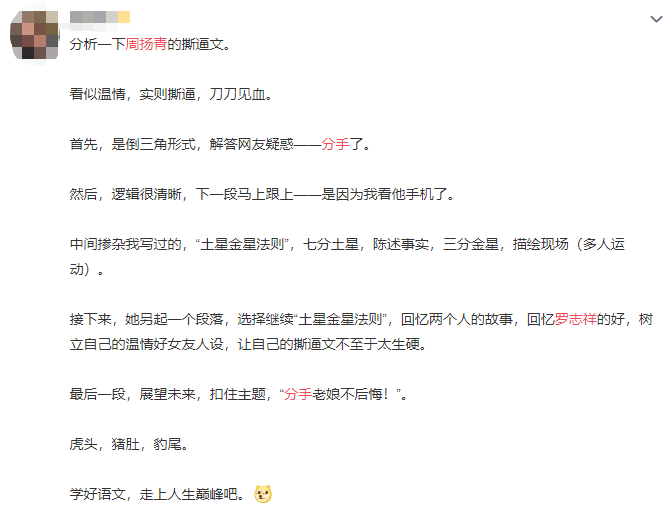 从周扬青公布分手恋情后