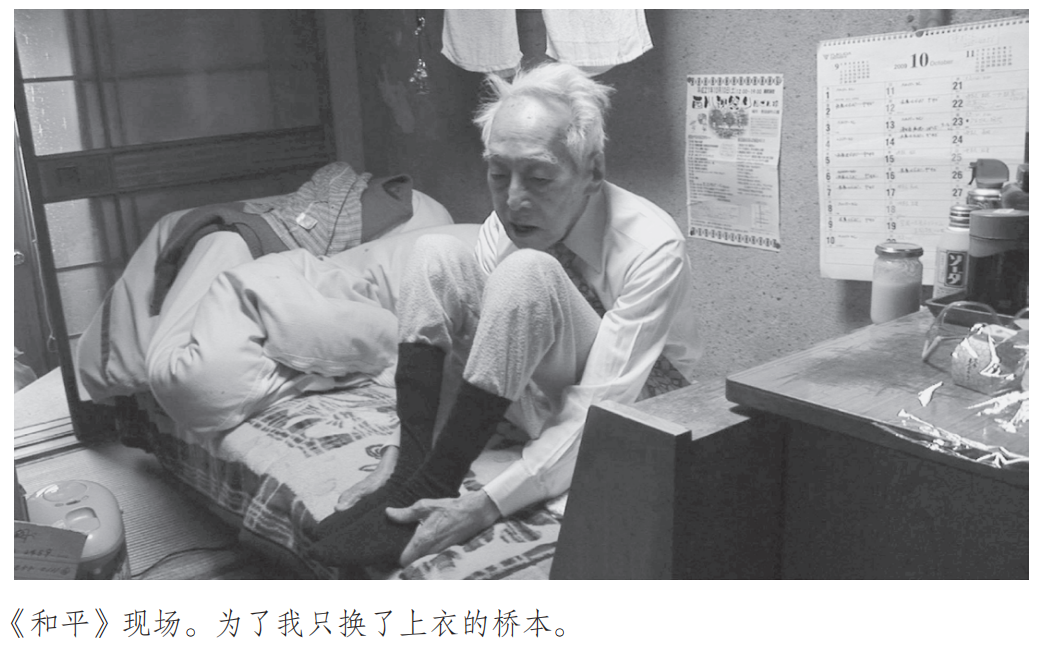 “把这个镜头放到电影里会不会对桥本①太残酷了?”这种想法我也不是没有过。①想田和弘的纪录片《和平》中所拍摄的对象。——编注桥本专门在上镜时换上衬衣领带,也许就表示他不希望自己穿着睡衣就被拍下来。这一点我无论如何都无法否认。所以关于这个镜头,如果有人用伦理性来质疑我,我也实在无法反驳。