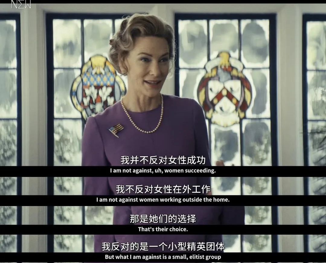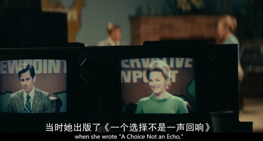 她在反ERA 动员大会上,讽刺女权者都是单身老处女,没有男人愿意娶她们时,小姑子就坐在台下,她看到小姑子的脸色很不好看,可那又怎样。为了自己的事业,她必须能屈能伸,利用身边一切人来为自己铺路,做完演讲后,又会用一些好听的话来挽回小姑子。