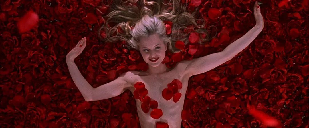 电影摄影师康拉德·霍尔在《美国丽人》中对红色的运用,是描绘了一个赤身裸体躺在深红色玫瑰花瓣上的少女,花瓣与她洁白的身体形成了鲜明的对比。