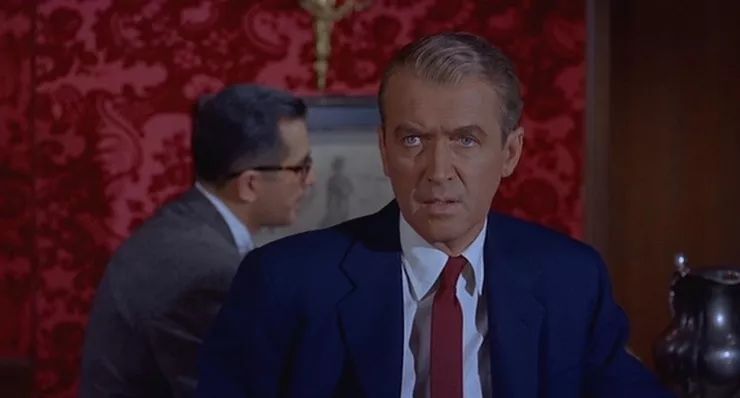 而在电影《迷魂记》中,詹姆斯·斯图尔特饰演的斯科蒂对玛德琳(金·诺瓦克饰)充满了迷恋,所以他整个人都被红色包围。