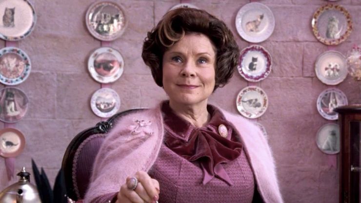 而在电影《哈利·波特与凤凰社》中,多洛雷斯·乌姆里奇(艾美达·斯丹顿饰)试图用粉色的服饰来掩盖自己,但是病态甜美的外表反而凸显了她内心的邪恶,这也使得她的所作所为看起来更加诡异。