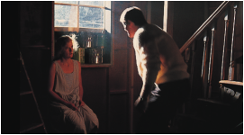 然而当演员们动起来时,光效发生了变化,整个场面变得生动起来。当男演员进一步走向女演员时,他黄色的毛衣就好比是一个移动的反光板,女演员的脸被毛衣映衬得非常漂亮。这节课所展示的是灯光的简洁性与运动性。通过利用演员的走位来调整画面中景物的亮度,克罗嫩韦思向我们强调了电影的灵动之美。除此之外,单一光源照明还为这个故事增加了张力,使该场景中二人的窗前对峙更具戏剧性。克罗嫩韦思表明,他的照明方式就是解决问题:“情况时刻在变,每个场景的问题各不相同,随着摄影师技术水平的提高,解决问题的方法会越来越多,你可以根据不同风格灵活选择。当你在选择镜头和其他器材的时候,你会自问‘我该怎么做才能得到理想的画面呢’,大多数的摄影师给出的答案是:跟着感觉走。”克罗嫩韦思把“感觉”建立在了解胶片的基础上。每部电影正式拍摄之前,克罗嫩韦思都会做很多胶片测试。他在访谈中说道:“我在很多不同的拍摄条件下试验,洗印时把这些试片调成统一的影调。通过判断光号的高低,评价试片是否曝光正确,最后得到一组通用的光号。但实拍的时候,第一天拍出来的样片用通用光号洗印出来后效果可能会不理想,那么就得再调,直到洗印光号固定下来,才可以尝试‘单光源照明’这种富有创造性的布光方式。毕竟,影响画面的可变因素太多了,每一个环节都有可能出差错。但也正是因为这种多变性,摄影师的工作才显得尤为重要。”约翰·托尔是第二位连续两届荣获奥斯卡最佳摄影奖的摄影师,在成为摄影指导之前,他在两部影片中为克罗嫩韦思做掌机员,《佩姬·休出嫁》就是其中的一部。“乔丹使用单一光源非常谨慎,我们一般不会只用一盏灯,但每场戏的照明都是从一盏灯开始构思的。在地下室的这场戏中,一开始,他只用一盏 10K灯是为了看大体效果。灯亮起来后,他发现一盏灯就够用了。这是一个看似容易的过程,其实,能够在某个时候意识到灯‘够用了’,是非常考验功力的。整场戏的强大之处在于简洁性,从构思起,到亮起第一盏灯,再到决定是否添加其他的光源……摄影师作判断的过程非常微妙。多亮起一盏灯,场景的气氛也许就全毁了,关键步骤在于判断优劣的边界。对此乔丹的判断力非常了得,他在作决定之前有时也会量量光,但那些读数对于他来说没那么重要,眼力和对摄影技艺的理解才是他的法宝。”