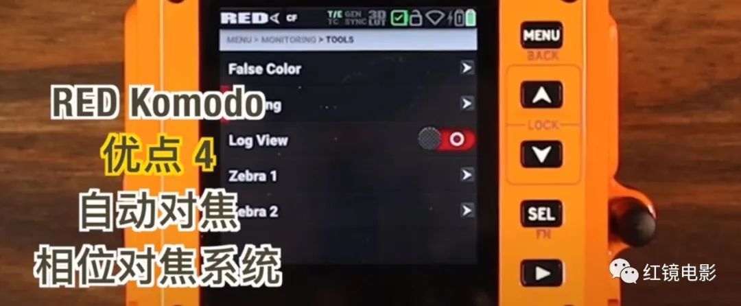 - 在外观设计上,RED Komodo 6K的外壳是金属材质的,质感扎实。在主按钮的设计上,贴心的进行了凹槽设计,有效的避免了误触。背面是双电池安装座以及DC、EXT和SDI接口。