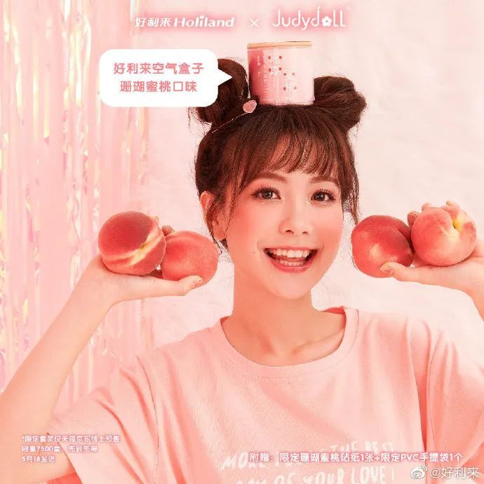 蜜桃珊瑚口味的空气盒子加上蜜桃珊瑚色的腮红,从产品到海报都戳中了人们的少女心。