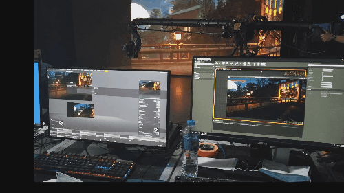 因为拍摄演员表演的物理摄影机的数据可以驱动虚拟引擎里的虚拟摄影机,因此,我们可以将演员的表演随意地带入任何一个空间。