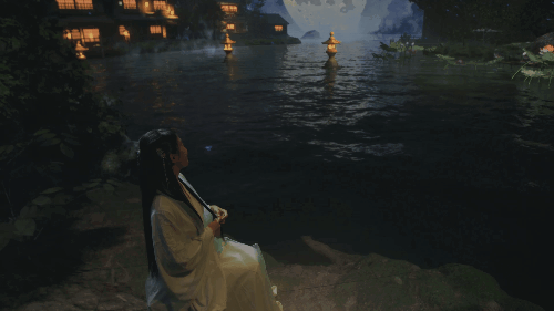 实验短片《遇》片中,在水边望月的一组镜头,随着演员的空间调度,虚拟灯光在 Grand MA 控台的调试下,完成了与虚拟引擎的气氛转化,以及人物面部氛围的营造。