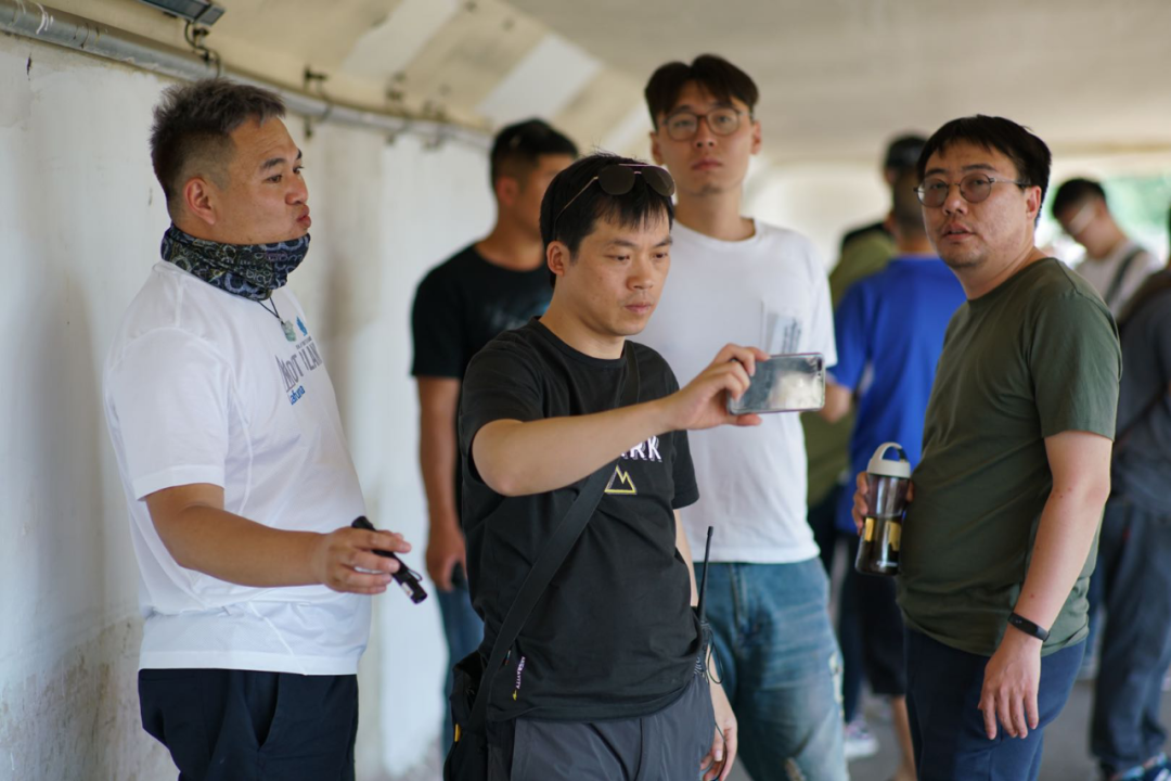在影调上,我们希望突出夏日的燥热感,因此外景的日戏反差要做足。在拍摄过程中,我密切关注天气变化,与统筹一起调整拍摄安排,会临时与执行导演调整拍摄进度,选择较为适合的光线拍摄。在光比控制上戏与戏之间有所区别,比如广胜在天桥上找狗,要体现广胜内心的焦虑,那场戏从午后就开始准备了,光比足够大,地面和建筑物的曝光点至少差一档,在后期调色的时候还加大了反差,来体现出炙热的感觉。夜戏的设计上,画面明暗对比也要足够。原本设想很多戏在用柔光的基础上加一些硬质的光源,但很多场景无法给直射光下灯位,只能留有遗憾。