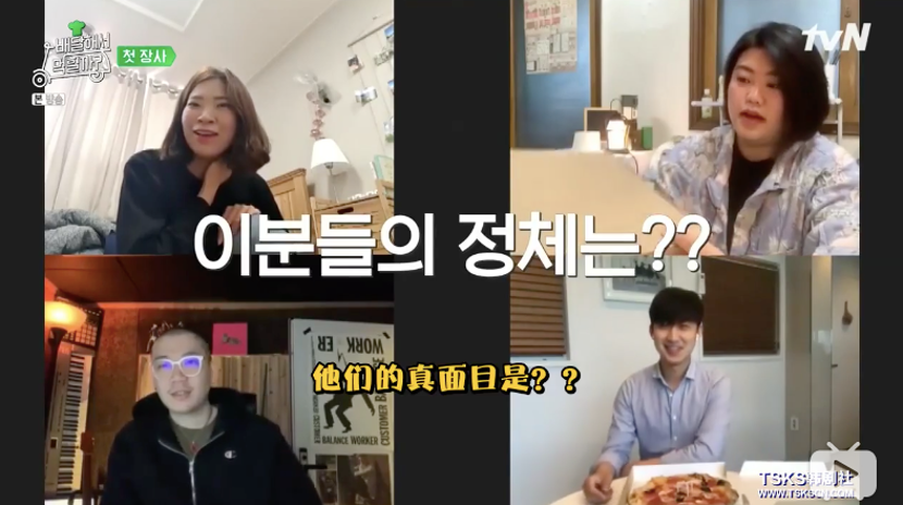 为此节目组想出的解决方案是,做一档假节目,以时下流行的“untact文化”为名,招募在网上一起“云聚餐”的人。网友们会预定来自外卖店的相同食物,在等待的过程中了解彼此的职业身份等基础信息,完成破冰;收到外卖后,对话便集中在对食物的评价上。在店里的明星也能实时收到看用餐的画面,听到客人的真实评价。虽然不及原本流动性餐车那样能与外部环境和客人产生各种联系、展开多重故事线,但《外卖吃得开吗》算是现有条件下的一次成功改造。