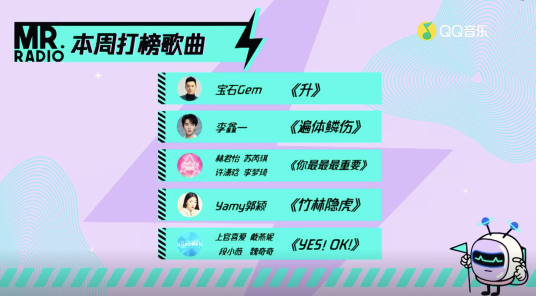 一方面,节目实现了线上互动创新。首先,节目设置主打歌周榜,强化音乐人与粉丝之间的连接。今年的“电台主打歌”周榜全新升级,每周五组嘉宾的主打歌入选周榜,每首歌有六周的助力时间角逐电台主打歌的荣誉。