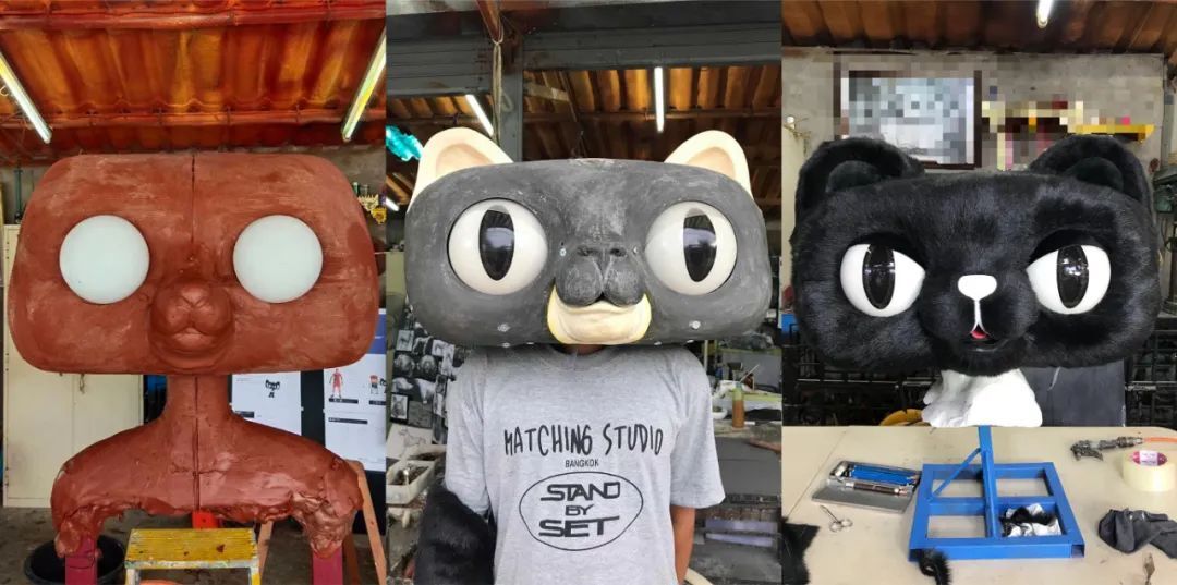 为了让猫机长更有戏,我们再次找到了泰国道具一哥dimsum老师(就是狼人系列,以及微博上的沙雕光头头盔制作者),将猫机长的眼皮、嘴巴、耳朵设置成可活动,用细节部位来帮助展现情绪和机长痞帅的个性。