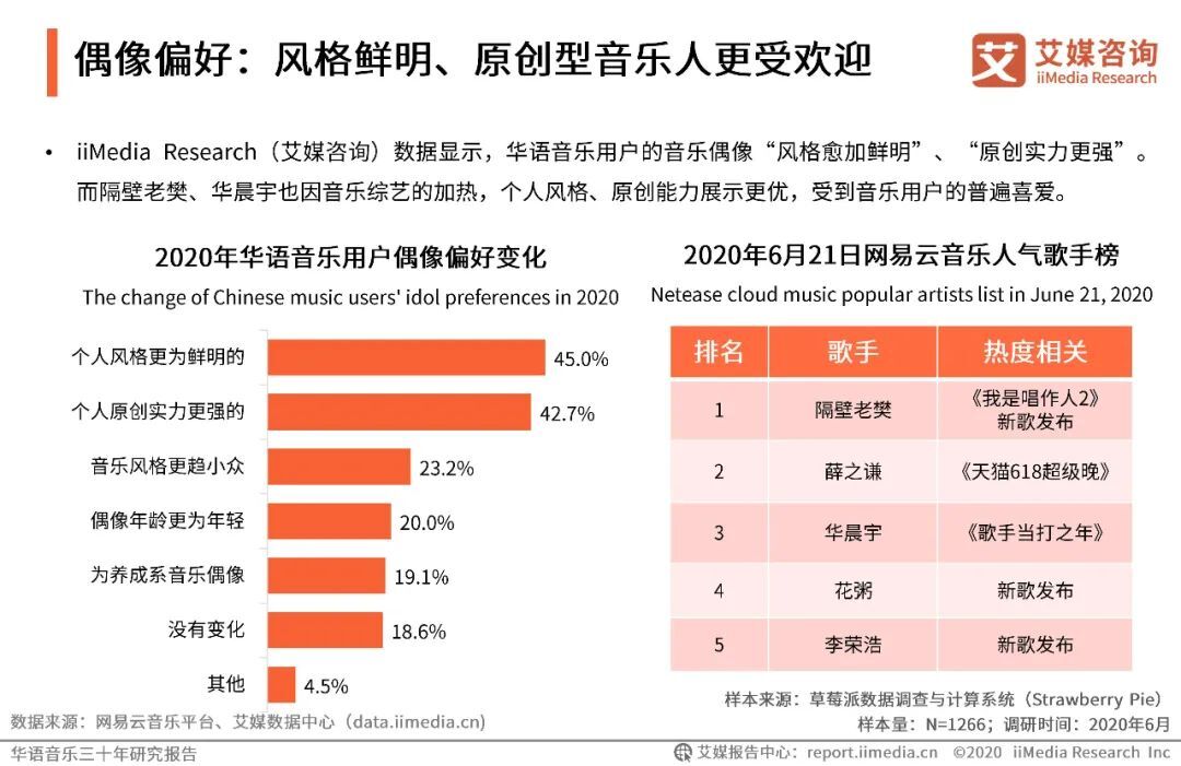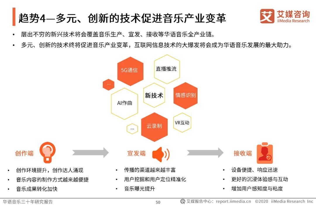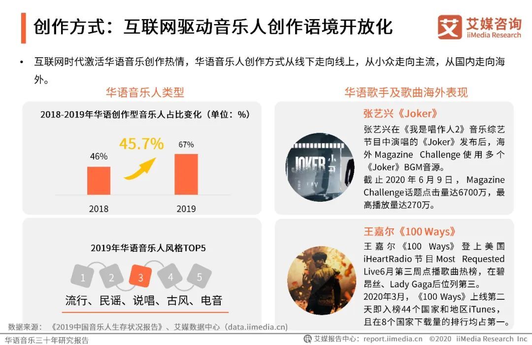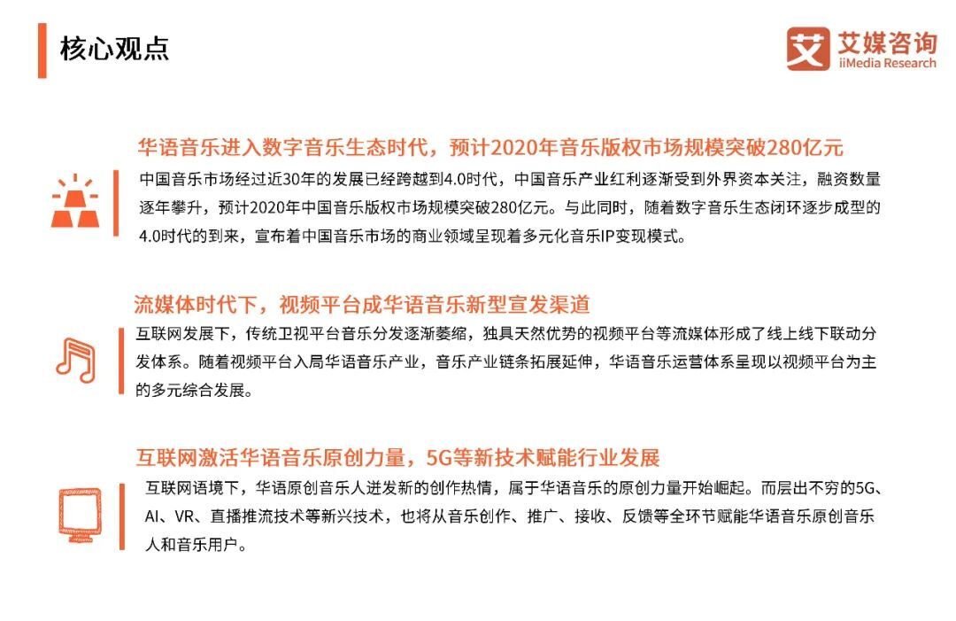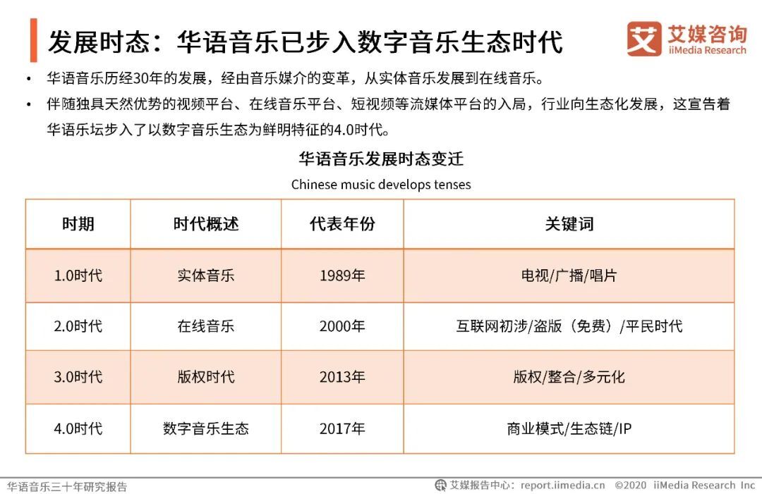 以上内容源自艾媒咨询发布《华语音乐三十年研究报告 |华语音乐步入数字音乐生态时代,互联网打通音乐人上升通道》。