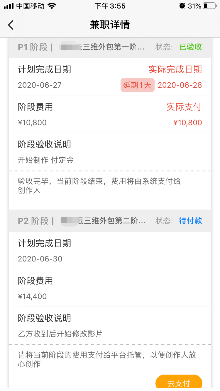 线上交易需要广告主将费用提前托管至平台,划分任务阶段,按阶段任务验收打款。平台保障广告主和制作方双方的权益,减少交易摩擦。
