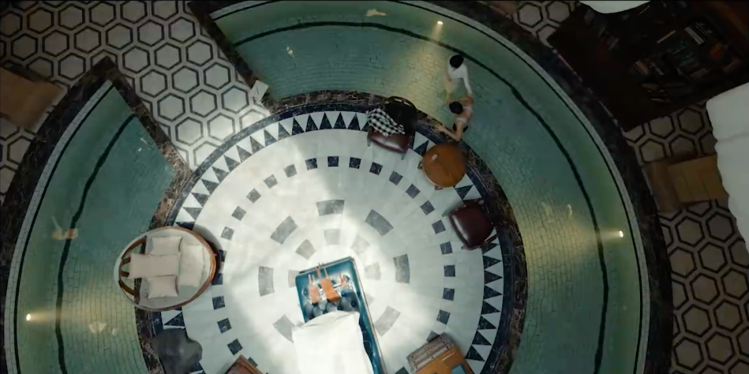 对于剧中重要的元素水和烟,我们也是只要有机会就会去用光线做些文章。像我们自己在棚里搭建的反派戎傲霜的理疗室,本身是一个有一圈圆形水池的空间,我又请美术老师在留了开口的房顶做了一个大水箱,让顶部投下来的光线也有水波纹的光影。夜戏的时候也会用圆形水池里的水在空间里投出波纹,让这个场景一直有一些不安的气氛。