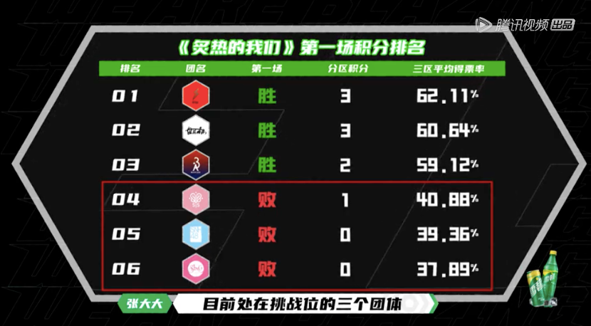 首先,节目采用清晰明确的分阶段赛制,在前两期节目中,我们看到了三组针锋相对的1V1竞演。这一阶段的团体对决非常简单直给,每组获得两个或两个以上年龄段积分的团体获胜,对应沙发位和挑战区两个区域,昨晚唯一一个双败团SING女团被直接淘汰。接下来会有不止一支“炙热高能团”加入对抗,争夺“团王”称号,对应的新赛制也更加新鲜刺激。比如下一场每个团体需要有一个成员来承担30-60秒的killing part,三区投票率垫底的团队不仅不能登上沙发位,担任KIlling Part的成员也将坐上“冷板凳”——直接禁赛一周。