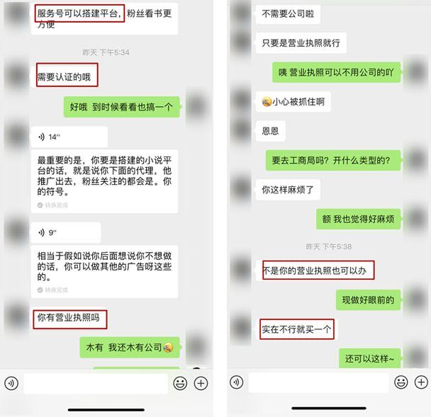其次,他们还会向代理人员推广自己的其他业务,比如服务号买卖、或者是营业执照代办等,很多都是擦边球的灰色操作。