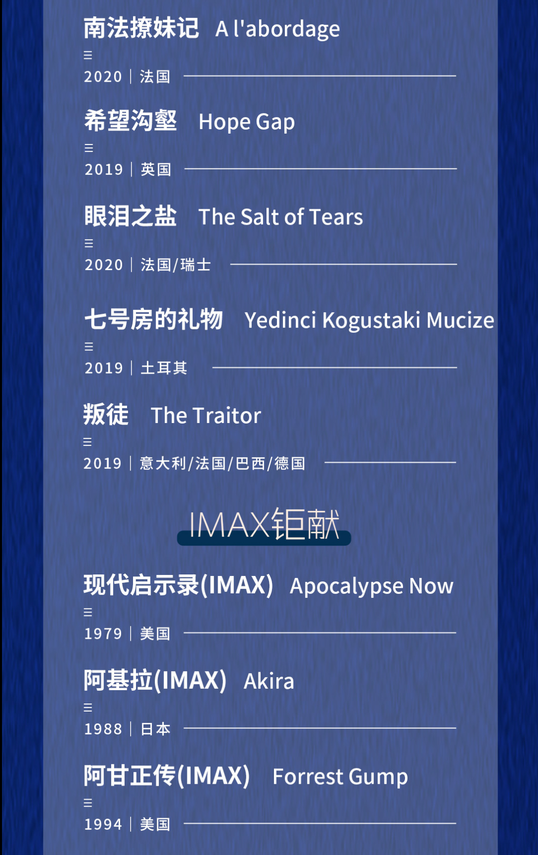 值得一提的是,今年的“IMAX钜献”主题单元将由《现代启示录》、《阿基拉》与《阿甘正传》三部影片挑大梁,“系列饕餮”主题单元则是《黑客帝国》系列的主场。