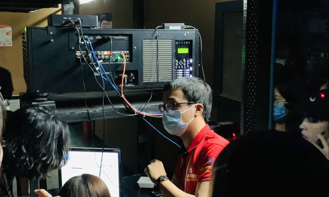 “放映时要先调整音响效果,确定是否是HDMI格式。操控盘一定要先解锁再操作,最后一步,银幕亮起,然后关闭影厅的灯光。”