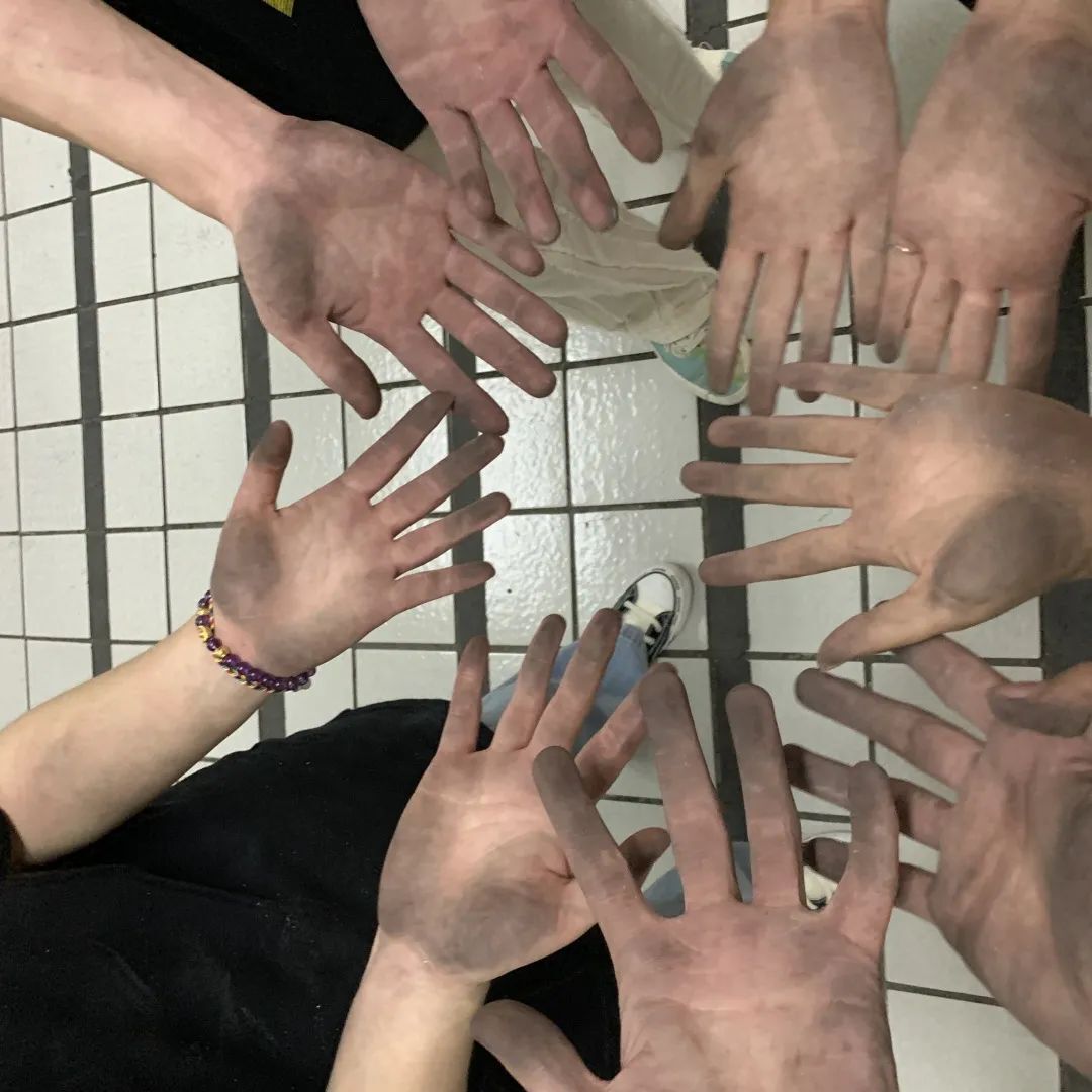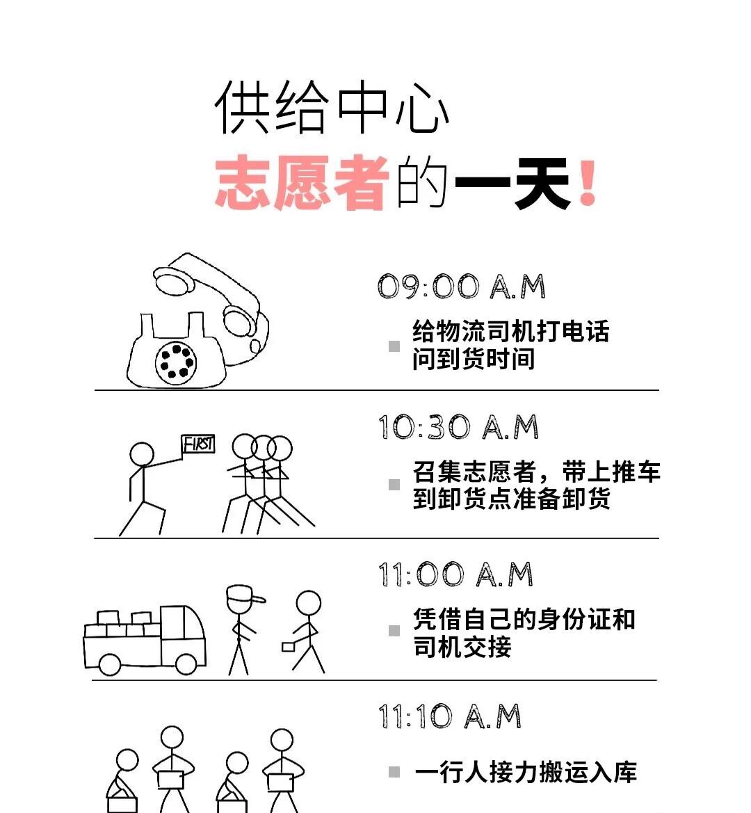 供给中心的志愿者,印象最深的一张工作“合照”是9只因为搬货而变黑的手。