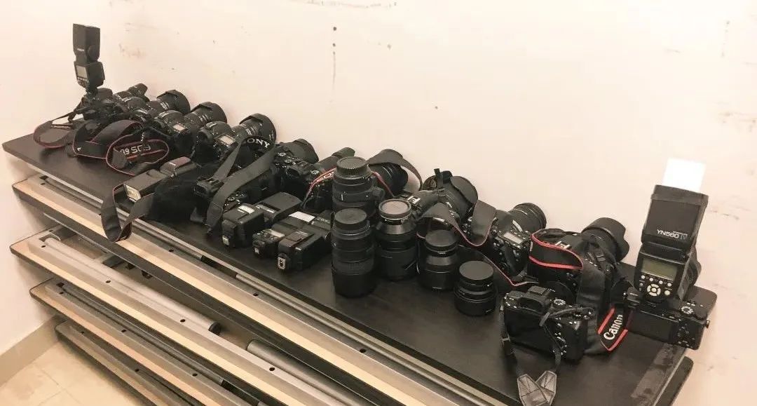 作为影展主要的影像记录者,图片中心的志愿者串联起了影展的每一个现场。单反相机、微单、gopro、 三脚架,20多种不同光圈焦段的镜、闪光灯、监视器、麦克风,20个人的团队设备应有尽有。
