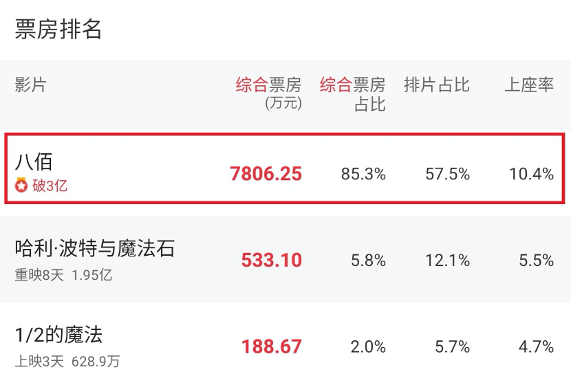 作为影院复工后的首部国产大片,《八佰》提前一周便开启点映,而这也是今年以来第一部开启大规模点映的国产电影,在8月14日点映首日便排满了6000场,高排片率也助力了《八佰》后续的口碑传播。