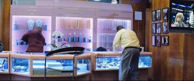 在谈到影片当中霍华德的珠宝店时,康吉说:“曼哈顿第 47 街上的珠宝店本身就非常明亮,令人眼花缭乱,色彩目不暇接,有着许多花哨的颜色。。我们使用了聚光灯和特殊的石英照明灯以及架设在天花板上的Sky Panels来为珠宝店照明。所有这些都由调光器控制,这可以使我们用不同的颜色和照明级别。胶片固有的色调和颜色非常独特,这是我迄今为止在数字方面还没有看到的,而且这些场景看起来的确很棒。”