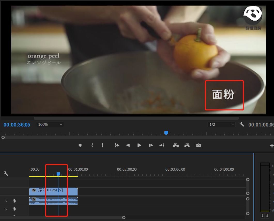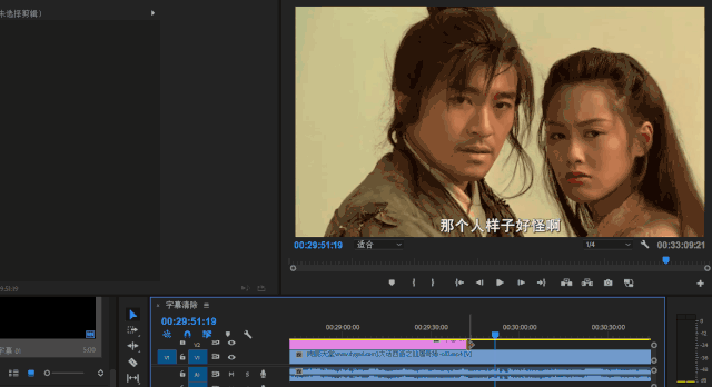 随后将新建好的字幕遮幅拖入到v2轨道上,这样就可以遮住视频中的字幕了,出现了电影既视感。